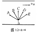 如图12-A-4所示,有5个箭头代表船的划速可以选择的5个方向,每相邻的两个箭头之间的夹角为300,已知水流速度v水=1m/s,船在静水中的划速为v划=2m/s,则(1)要使船能垂直地渡过河去,那么划船速度的方向是____________; (2)要使船能在最短的时间过河,那么划船速度的方向是_______________