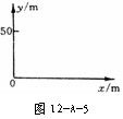 如图12-A-5所示,汽车甲以8m/s的 速度从坐标原点开始向x轴正方向做匀速直线运动,同时汽车乙以10m/s的速度从坐标(0,50)处开始做匀速直线运动,要使两车恰好在x轴上相遇,那么乙车的速度方向与y轴所夹锐角的大小是___________.