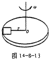 如图14-B-13所示,水平转盘上放有质量为m的物块,当物块到转轴的距离为r时,连接物块和转轴的绳刚好被拉直(绳上张力为零)。物体和转盘间最大静摩擦力是其正压力的μ倍.求:
