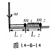 11.如图14-B-14所示,当质量分别为m1和m2的两球以等角速度ω绕轴在光滑平面上旋转时,突然绳烧断L1的瞬时,m1的加速度大小是多少?方向怎样?