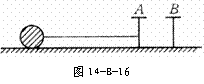 13..如图14-B-16所示,光滑的水平桌面上,钉有两枚铁钉A和B,相距0.1m,长1m的柔软细线,一端拴在A上,另一端拴住一个质量为500g的小球,小球的初始位置在AB连线上A的一侧,把细线拉直,给小球以2m/s,垂直于细线方向的水平速度,使它做圆周运动,使绳子逐渐被缠绕在AB上,已知细线所能承受的最大拉力为8N,问:小球从开始运动到细线断裂用时多少?