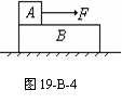 如图19-B-4所示,木块A放在木块B的左上端,用恒力F将A拉至B的右端,第一次将B固定在地面上,F做的功为W1;第二次让B可以在光滑地面上自由滑动,F做的功为W2,比较两次做功,应有: