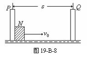 如图19-B-8所示,P、Q是竖直固定在水平桌面上的档板,值量为m的小物块N在靠近P以一定初速度向Q板运动,已知物块与桌面的滑动摩擦系数为