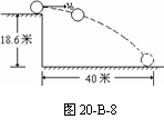 12.如图20-B-8所示,将质量为3.5kg的小球水平抛出,g取10m/s2,空气阻力不计。求:①抛出时人对球所做的功?②抛出后0.2秒小球的动能?