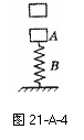 2.一物体从某一高度自由落下落在竖立于地面的轻弹簧上,如图21-A-4所示,在A点物体开始与轻弹簧接触,到B点时,物体速度为零,然后被弹簧弹回,下列说法正确的是 ( )