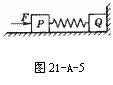 质量相等的两物块P、Q间用一轻弹簧连接,放在光滑的水平地面上,并使Q物块紧靠在墙上,现用力F推物块P压缩弹簧,如图21-A-5所示,待系统静止后突然撤去F,从撤去力F起计时,则 ( )