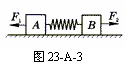 4如图23-A-3所示,两物体A、B用轻质弹簧相连静止在光滑水平面上,现同时对A、B两物体施加等大反向的水平恒力F1、F2,使A、B同时由静止开始运动,在运动过程中,对A、B两物体及弹簧组成的系统,正确的说法是(整弹簧不超过其弹性限度) ( ) A.动量始终守恒 B.机械能不断增加 C.当弹簧伸长到最长时,系统的机械能最大 D.当弹簧弹力的大小与F1、F2的大小相等时,A、B两物速度为零