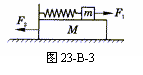 如图23-B-3所示,一轻弹簧左端固定在长木块M的左端,右端与小物块m连接,且m、M及M与地面间接触光滑,开始时,m和M均静止,现同时对m、M施加等大反向的水平恒力F1和F2,从两物体开始运动以后的整个过程中,对m、M和弹簧组成的系统(整个过程中弹簧形变不超过其弹性限度,M足够长),正确的说法是