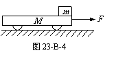如图23-B-4所示,质量M= 8.0kg的小车停放在光滑水平面上。在小车右端施加一个F = 8.0N的水平恒力。当小车向右运动的速度达到3.0m/s时,在其右端轻轻放上一个质量m=2.0kg的小物块(初速为零),物块与小车间的动摩擦因数μ = 0.20,假定小车足够长。求:⑴经多长时间物块停止在小车上无相对滑动?⑵小物块从放在车上开始,经过t = 3.0 s,通过的位移是多少?(取g=10m/s2)