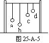 如图25-A-5所示,在一根张紧的绳子上挂着4个单摆小球a、b、c、d,它们的摆长分别是Lb=1.0m,La=3Lb/4,Lc=Lb/2,Ld=Lb/4,当用0.5HZ的周期性外力拨动张紧的绳时,稳定后摆球振动的振幅最大的是( )
