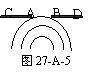 如图27-A-5是观察水面波衍射的实验装置,AC和BD两块挡板,AB是一小孔,O是波源,图中已画出波源所在区域波的传播情况,每两条相邻波纹之间距离表示一个波长,则波经过孔之后的传播情况,下列描述中正确的是( )
