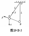 如图29-B-5所示,A、B是带有等量的同种电荷的两个小球,它们的质量都是m,它们的悬线长度都是L,悬线上端都固定同一点O,B球悬线竖直且被固定,A球在力的作用下,偏离B球x的地方静止平衡,此时A受到绳的拉力为T;现在保持其他条件不变,用改变A球质量的方法,使A球在距B为