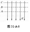 9.如图31-A-8所示,实线为匀强电场中的电场线,虚线为等势面,且相邻等势面间的电势差相等。一正电荷在等势面A处的动能为20J,运动到等势面C处的动能为零。现取B等势面为零电势能面,则当此电荷的电势能为2J时的动能是 J。
