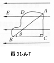 如图31-A-7所示,在场强为E的匀强电场中有相距为l的A、B两点,连线AB与电场线的夹角为θ,将一电量为q的正电荷从A点移到B点,若沿直线AB移动该电荷,电场力做的功W1= ;若沿路径ACB移动该电荷,电场力做的功W2= ;若沿曲线ADB移动该电荷,电场力做的功W3= 。由此可知,电荷在电场中的移动时,电场力做功的特点是