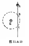 如图31-A-10所示,光滑绝缘竖直细杆与以正点电荷Q为圆心的圆周交于B、C两点,一质量m,带电量一q的空心小球从杆上A点无初速下落,设AB=BC=h,小球滑到B点的速度为