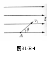 如图31-B-4所示,一带负电q的油滴,从A点以速度v0与水平方向成θ角射入沿水平方向的匀强电场中,如测得油滴在电场中达到最高点B时,它的速度大小恰为v0,则B点的位置( )
