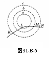 8.如图31-B-6所示,虚线a、b、c代表是静电场中的三个等势面,它们的电势分别为φa、φa、φc,且φa>φa>φc。一带正电的粒子射入电场中,其运动轨迹如实线KLMN