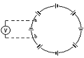 C. 外电路断开时,电流为零,路端电压的值等于ε;D.上述说法都错。