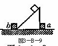 如图3-B-9所示,在光滑水平面上,一个斜面被两个固定于水平面上的小木桩a和b挡住,然后在斜面上放一物体,正确的是 ( )