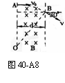 8如图40-A8,一束电子(电量为e)以速度v垂直射入磁感应强度为B,宽度为d的匀强电场中,穿过磁场时速度方向与电子原来入射方向的夹角是30°,则电子的质量是 ,穿过磁场的时间是