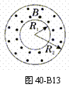 如图40-B13所示,环状匀强磁场B围成的中空区域,具有束缚带电粒子作用.设环状磁场的内半径R1=10cm,外半径为R2=20cm,磁感