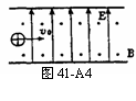 如图41-A4所示,匀强电场方向竖直向上,匀强磁场的方向垂直纸面向外.有一正离子(不计重力),恰能沿直线从左向右水平飞越此区域.则( )
