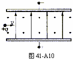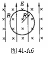 3.如图41-A6所示,在互相垂直的匀强电场和匀强磁场中,电量为q的液滴做半径为R的匀速圆周运动,已知电场强度为E,磁感应强度为B,则油滴的质量和环绕速度分别为( )