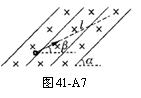 4.如图41-A7所示,实线表示处在竖直平面内的匀强电场的电场线,与水平方向成α角,水平方向的匀强磁场与电场正交,有一带电液滴沿斜向上的虚线做直线运动,与水平方向成β角,且α>β,则下列说法中正确的是( )