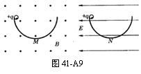 如图41-A9所示,两个半径相同的半圆形光滑轨道分别竖直放在匀强电场和匀强磁场中,轨道两端在同一高度上.两个相同的带正电小球同时从两轨道左端最高点由静止释放,M、N为轨道的最低点,则(