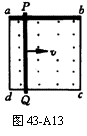 固定在匀强磁场中的正方形导线框abcd,各边长l,其中ab是一段电阻为R的均匀电阻丝,其余三边均为电阻可忽略的铜线.磁场的磁感应强度为B,方向垂直纸面向里,现有一与ab段所用材料、粗细、长度都相同的电阻丝RQ架在导线框上,如图43-A13所示,以恒定速度υ从ad滑向bc,当PQ滑过l/3的距离时,通时aP段电阻丝的电流是多大?方向如何?