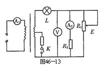 2. 如图46-13所示的电路中,理想变压器初级加一个固定的交变电压,那么下列情况正确的是 ( )