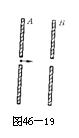 图46-19中A、B是一对中间开有小孔的平行金属板,两小孔的连线与金属板面相垂直,两极板的距离为l,两极板加低频交流电.A板电势为零,B板电势