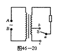 如图46-20所示的理想变压器,UAB=220V,nbC=10匝,R=10Ω,当S由b掷到c时流过R的电流强度增加了0.2A,则铁芯中磁通量Φ的变化率