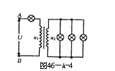 如图46-A-4所示是一理想变压器的电路图,若初级回路A、B两端接交流电压U时,四个相同的灯泡均正常发光,则原副线圈匝数比为(该题采用电流求匝数比较为方便)