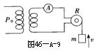 10.如图46-A-9所示,理想变压器的输出端接有一电动机,电动机的电阻R,电动机带动一质量为m的重物以ν匀速上升,若变压器的输入功率为P0,则图中电流表的读数应等于多少?