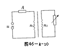 如图46-A-10所示的电路中,一理想变压器的原线圈与副线圈的匝数比为n1:n2=1:2,电源电压U1=220V,A是额定电流为I0=1A的保险丝。R是可变电阻,为了不使原线圈中的电流超过I0,调节电阻R时,其阻值最低不能小于多少?