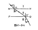 一束光穿过Ⅰ、Ⅱ、Ⅲ介质时,光路图如图47-B-6所示,MN与PQ为介质的界面则