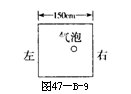 在边长为15cm的正方形玻璃砖中有一个小气泡(图47-B-9),从左向右看去,气泡离左侧面深6cm,从右向左看去,气泡离右侧面深4 cm,则气泡实际距右侧面的深度为 ,此玻璃砖的折射率