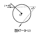 的透明球表面,光束在过球心的平面内,入射角i=45°,研究经折射进入球内后,又经内表面反射一次,再经球面折射后射出的光线,如图47-B-13所示(图上已画出入射光线和出射光)