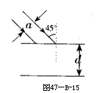 15.如图47-B-15所示,宽度为a的平行光束从空气斜射到两面平行的玻璃砖上表面,入射角为45°,光束中含有两种不同波长的单色光,玻璃对两种单色光的折射率分别为n1=
