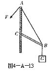 12.如图4-A-13所示,AC是上端带有定滑轮的竖直杆,质量不计的轻杆BC一端通过铰链固定在杆AC上的C点,另一端B悬挂一重为C的物体,同时B端还系一根轻绳绕过定滑轮A用一拉力F拉住。开始时,∠BCA大于90°,现用拉力F使∠BCA缓慢减小,直到BC接近竖直位置的过程中,杆BC所受的压力N和细绳的拉力T如何变化?(动态平衡问题的判定)