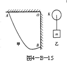 如图4-B-15甲所示,将一条轻而柔软的细绳一端拴在天花板上的A点,另一端拴在竖直墙上的B点,A和B到O点的距离相等,绳的长度是OA的两倍.图乙所示为一质量可忽