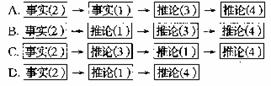 请按程序先后次序排列,并指出它究竟属于可靠事实,还是通过思维过程的推论,下列选项正确的是(方框内数字表示上述程序的号码)( ).