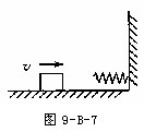 如图9-B-7所示,一木块在光滑水平面上以速度v运动,前方固定有一个弹簧,对木块压