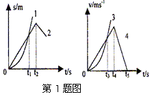 1.如图所示的位移(s)-时间(t)图象和速度(v)-时间(t)图象中,给出四条曲线1、2、3、4代表四个不同物体的运动情况,关于它们的物理意义,下列描述正确的是( )