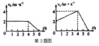 3.质量为0.2kg的物体,其速度在x、y方向的分量vx、vy,与时间t的关系如图所示,已知x、y方向相互垂直,则( )