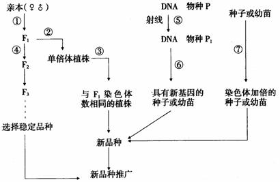 (3)⑦过程所示的育种方法叫做 。③、⑦过程中目前最常用而且最有效的方法是用 来处理萌发的种子或幼苗,原理是抑制了细胞分裂时 的形成,引起细胞内染色体数目加倍。