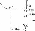 13.如图所示,是利用闪光照相研究平抛运动的示意图。小球A由斜槽滚下,从桌边缘水平抛出,当它恰好离开桌边缘时,小球B也同时下落,两次闪光的时间间隔为0.1s的闪光器拍摄的照片中B球有四个像,像间距离已在图中标出,两球恰在位置4相碰。则A球从离开桌面到和B球碰撞时经过的时间为____s,
