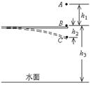 18.(12分)在2008年北京奥运会中郭晶晶获得女子个人3米板跳水冠军,其跳水的过程可简化为:运动员将跳板向下压到最低点C,跳板反弹将运动员上抛到最高点A,然后做自由落体运动,竖直落入水中。如果将运动员视为质点,且已知运动员的质量为m,重力加速度为g,AB间、BC间和B与水面间的竖直距离分别为h1、h2、h3,如图所示。试求:
