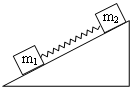 斜面上有m1和m2两个物体,与斜面间的动摩擦因数分别为μ1和μ2.两物体间用一根轻质弹簧连接,恰好能一起沿斜面匀速下滑.如题17图所示.则以下说法正确的是